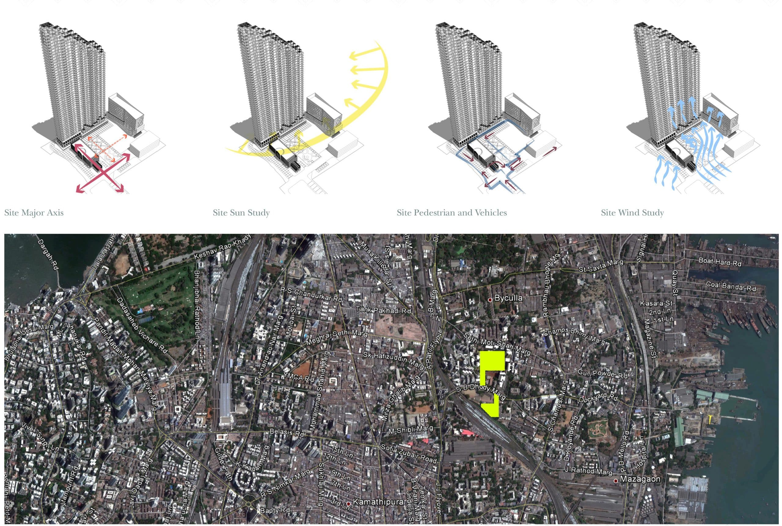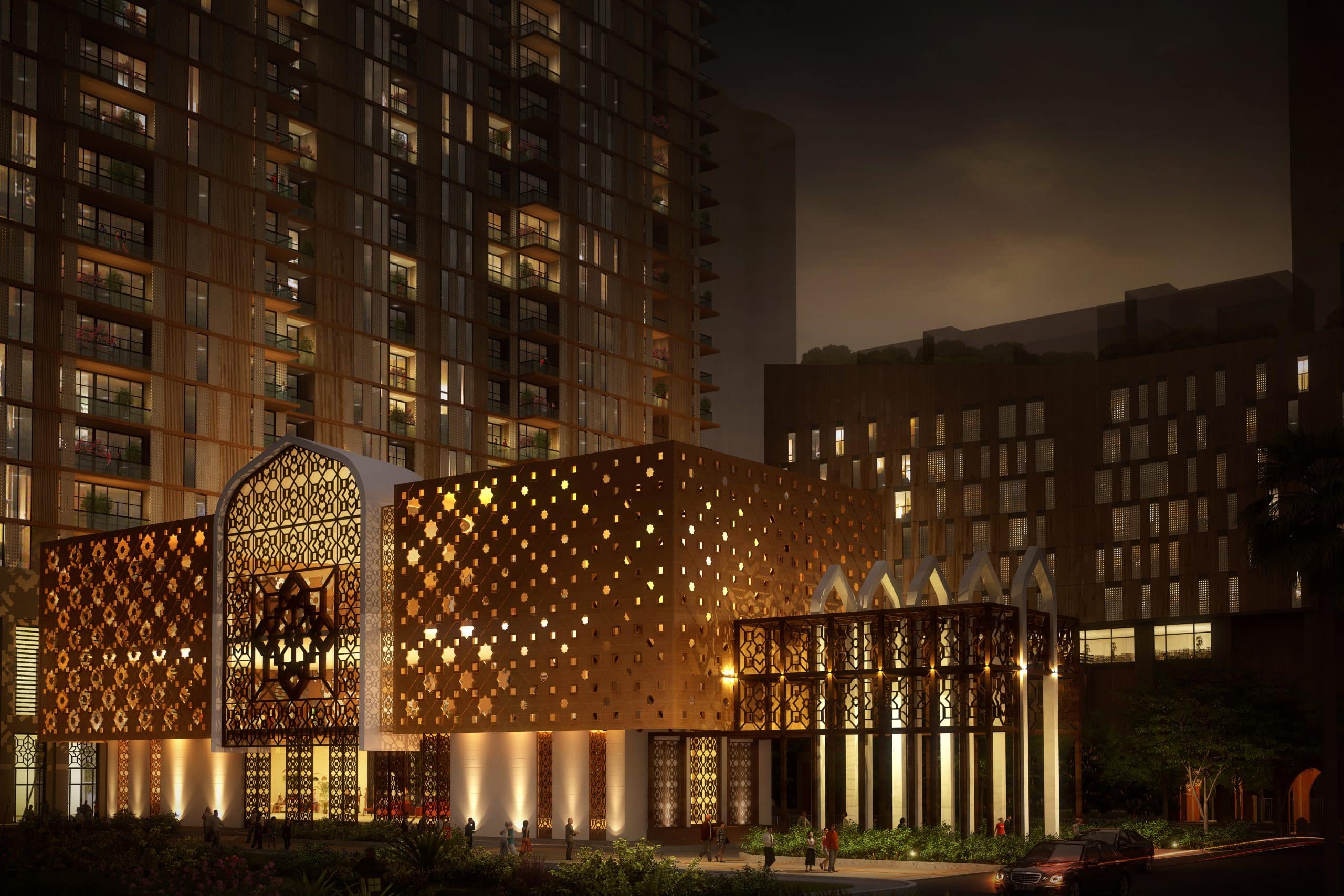 The project for the redevelopment of the Aga Hall Estate at Mazgaon in Mumbai proposes to replace the existing old structures of a charitable hospital, school, residences and others on the Aga Hall Estate land parcel with tall high rise structures with modern state-of-the-art infrastructure, having a mix of residential and commercial units to be used by existing tenants as well as for sale to new owners. The vision also included a k-12 school and a nursing college with a modern multi- specialty hospital on an adjacent plot to be planned as per current international standards as well as a Jamaat Khana i.e. a place for congregation and worship as the center of this planned neighborhood. The proposed design to achieve this vision began with the integration of design drivers such as cultural, contextual and sustainable aspects. The design team also studied the evolution of complex geometric patterns arising from various transitions between the divinely perfect circle and the earthly order of the square – the squaring of the circle while conforming to the golden section - which form the basis of any Islamic architecture. It next took into account the pressing global concerns of sustainability and green architecture and developed a plan for a cohesive community with built-in modern amenities woven around a landscaped courtyard inspired by traditional elements like ‘wadis’ and integrated with climate-responsive strategies and future-ready sustainable systems.