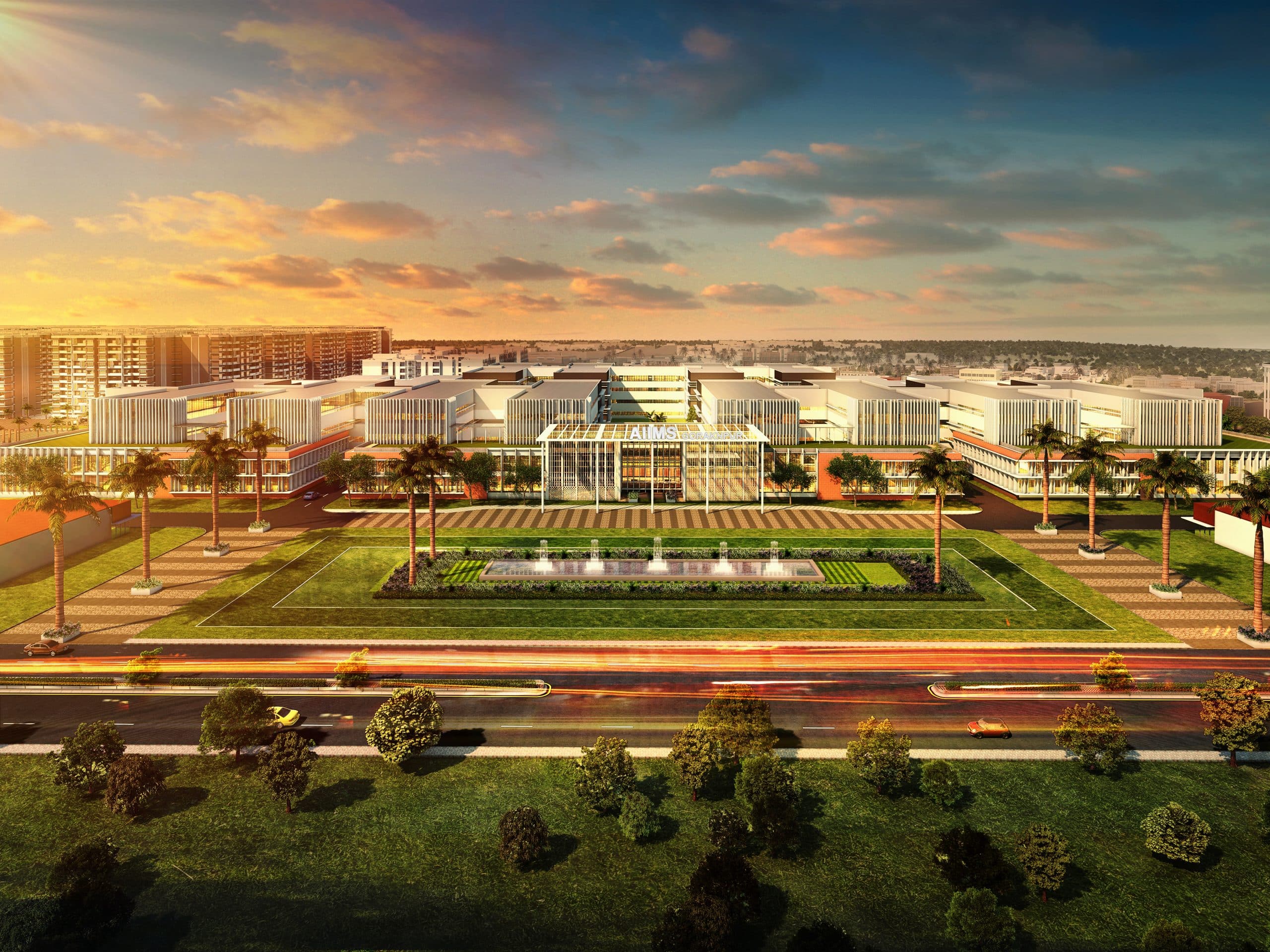 Located on a 112 acre site wedged between the Gorakhpur- Deoaria Road and the NH 28, the All India Institute of Medical Sciences (AIIMS) campus at Gorakhpur is proposed by the Indian Government to develop world-class multi-specialty healthcare and research facilities available to the region’s population within easy access. The campus, therefore, needed to be well planned and executed for technical and functional efficiency as well as an ambience conducive for healing. The design approach is to create a campus that local citizens could easily connect with and to achieve this, stakeholder participation was sought at the planning and designing stages. The campus constitutes a 900+ bed educational hospital, a medical college and research center accompanied by residential facilities for students, teaching, non-teaching and research staff, dining, social and sports amenities and a variety of landscaped areas.