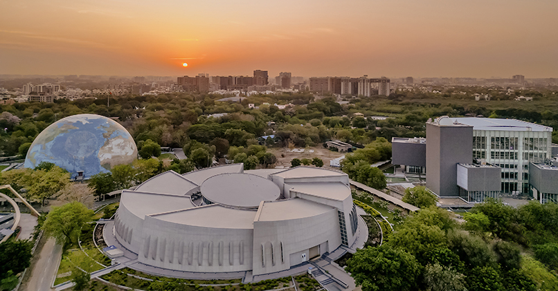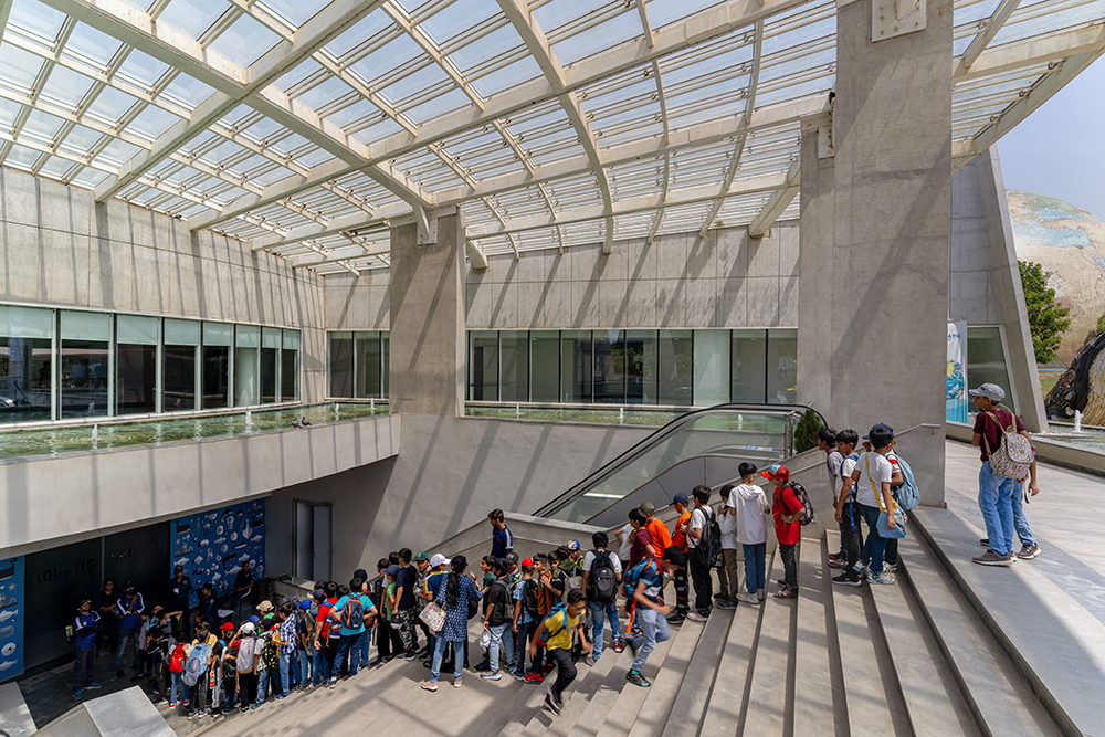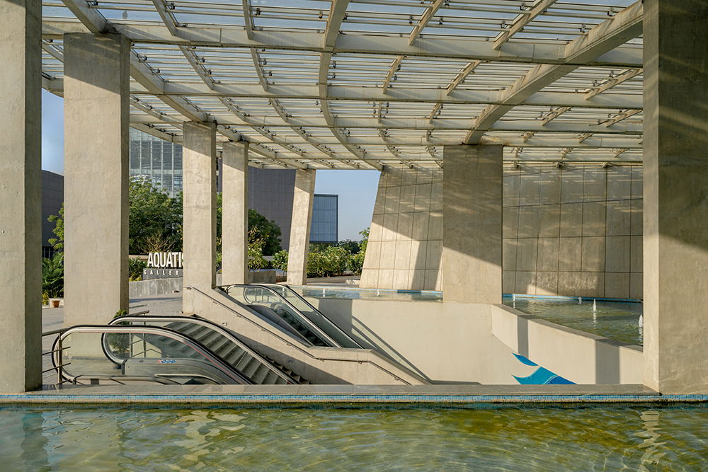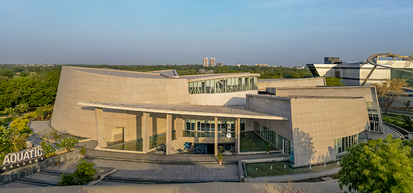 Water being a major component of our planet, ‘aquatic life’ was an obviously impelling section in the Gujarat Government’s ambitious Science City project for Ahmedabad. India’s first-of-its-kind aquarium project of 13,000 sq m area conceived here employed INI’s intuitive design strengths and technical competence to realize it. It unfolded as the challenge that inspired a collaborative endeavor by all stakeholders to deliver design as well as operational excellence. Whereas, creating a massive water world in hot, dry inland Ahmedabad was itself a challenge, flawless sustenance of fluid visitor movement and perennial maintenance of a conducive conditions for live underwater exhibits were also critical. The architectural resolution emerged through marine-life inspired form with a layout of various aquatic galleries nested in multiple wings swirling out from around a central circular atrium bearing the visitors’ arrival lobby. The exterior clad in exposed concrete invokes the chitinous shell exterior and the surrounding waterbodies complete the visual mimetic.