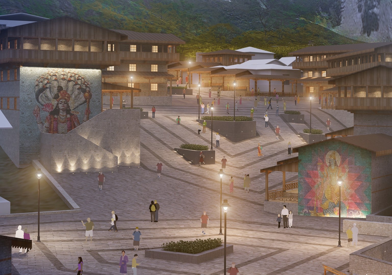 Many issues plagued Badrinath in its existing situation, such as unchecked and unplanned growth and construction activity leading to insufficient infrastructure, congested streets, unclean public areas, clutter blocking visibility along important axes, undefined temple precincts, inadequate public realms and parking facilities, insufficient space for pilgrims to queue up at the temple and perform rites along the ghats. These and other issues such as unifying other nearby places of tourist importance to create a convenient tourist/pilgrim network are addressed under the project to redevelop Badrinath by the Uttarakhand State Government. This Badrinath Redevelopment project, was undertaken by INI that included visual and detailed assessment & study of existing conditions and issues, and preparing a Master Plan for the redevelopment of the existing town including provisions for robust physical and social infrastructure in a phased implementation plan.