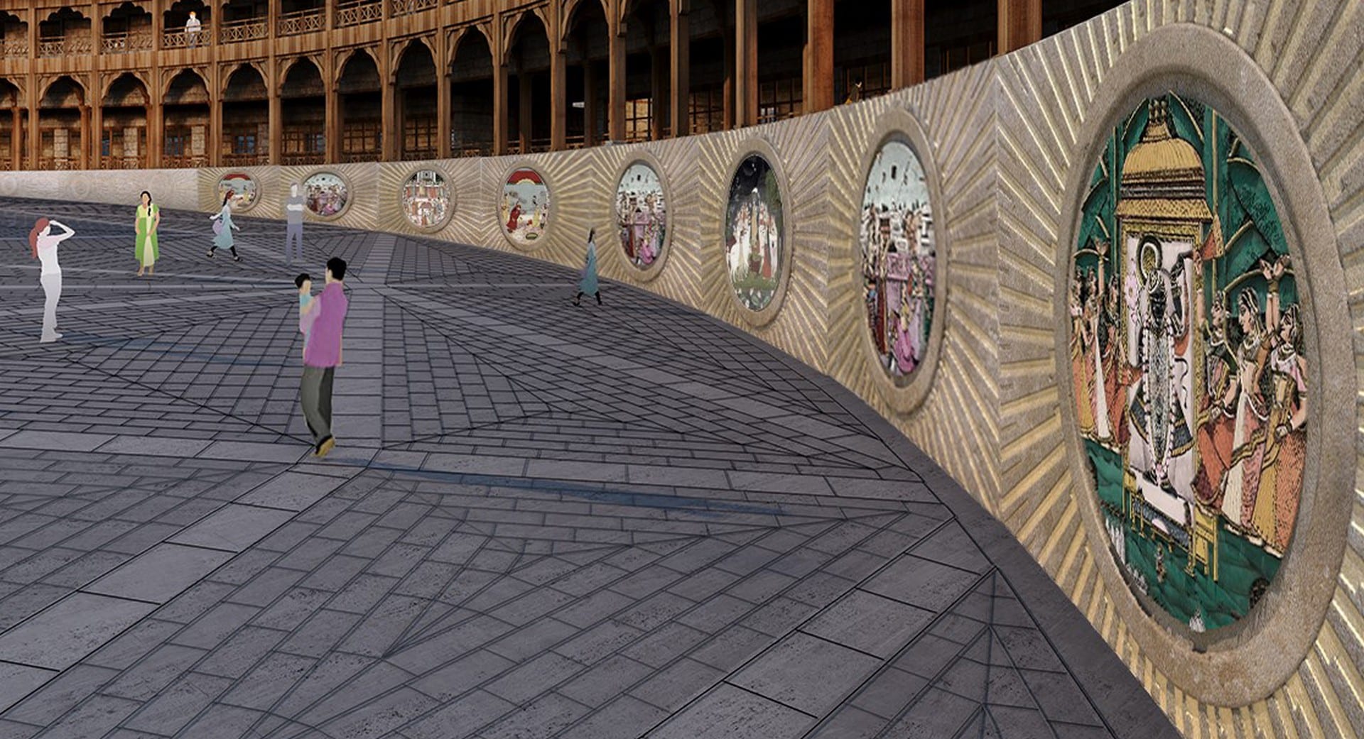 The linear connect through the bridges over the river extends through internal streets and an open plaza directly up to the Shesh-Netra Lake, around which a landscaped lake-park has been developed. A landscaped pedestrian street connects this lake park to another major lake-park located up north to create a wonderful, large open green zone that lends a sense of place and arrival to tourists coming in from the ample parking space for buses, cars, jeeps and other vehicles created just ahead of this open public plaza.