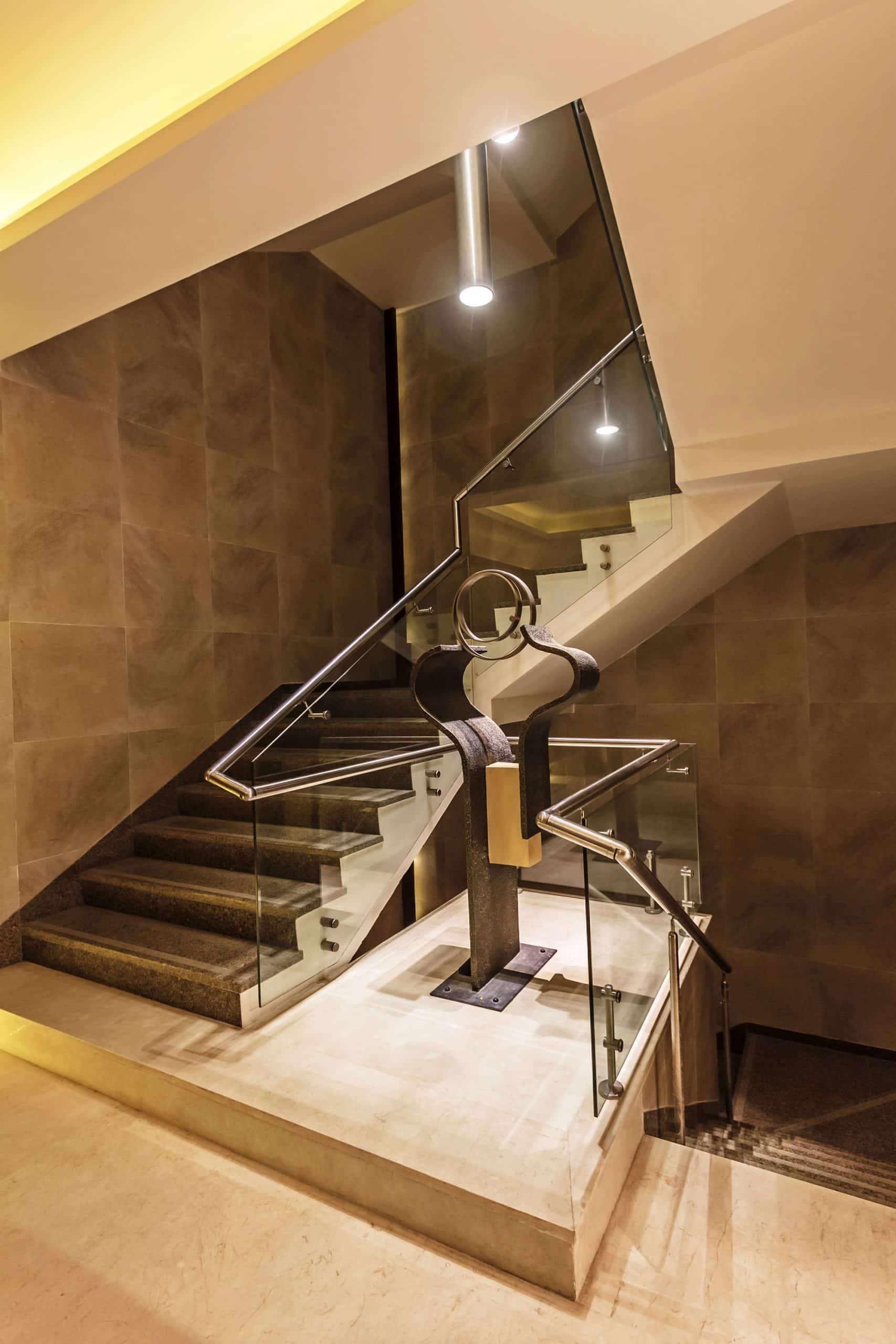 Treated with plush finishes and lavishly accessories, all spaces within the building bear the mark of an exclusive venue designed to inspire momentous & collaborative business interactions at the offices and retail outlets here. While second floor offices have terraces carved out from the sides, third floor offices overlook terrace gardens and internal courtyards which lead up a set of stairs to partitioned sit-outs on the building’s terrace floor – thus offering maximum green connections and open spaces for interaction. The fact that this premium environment has been achieved through a spatially optimum design where the building occupies a maximum portion of the site lend it an epigrammatic quality.s