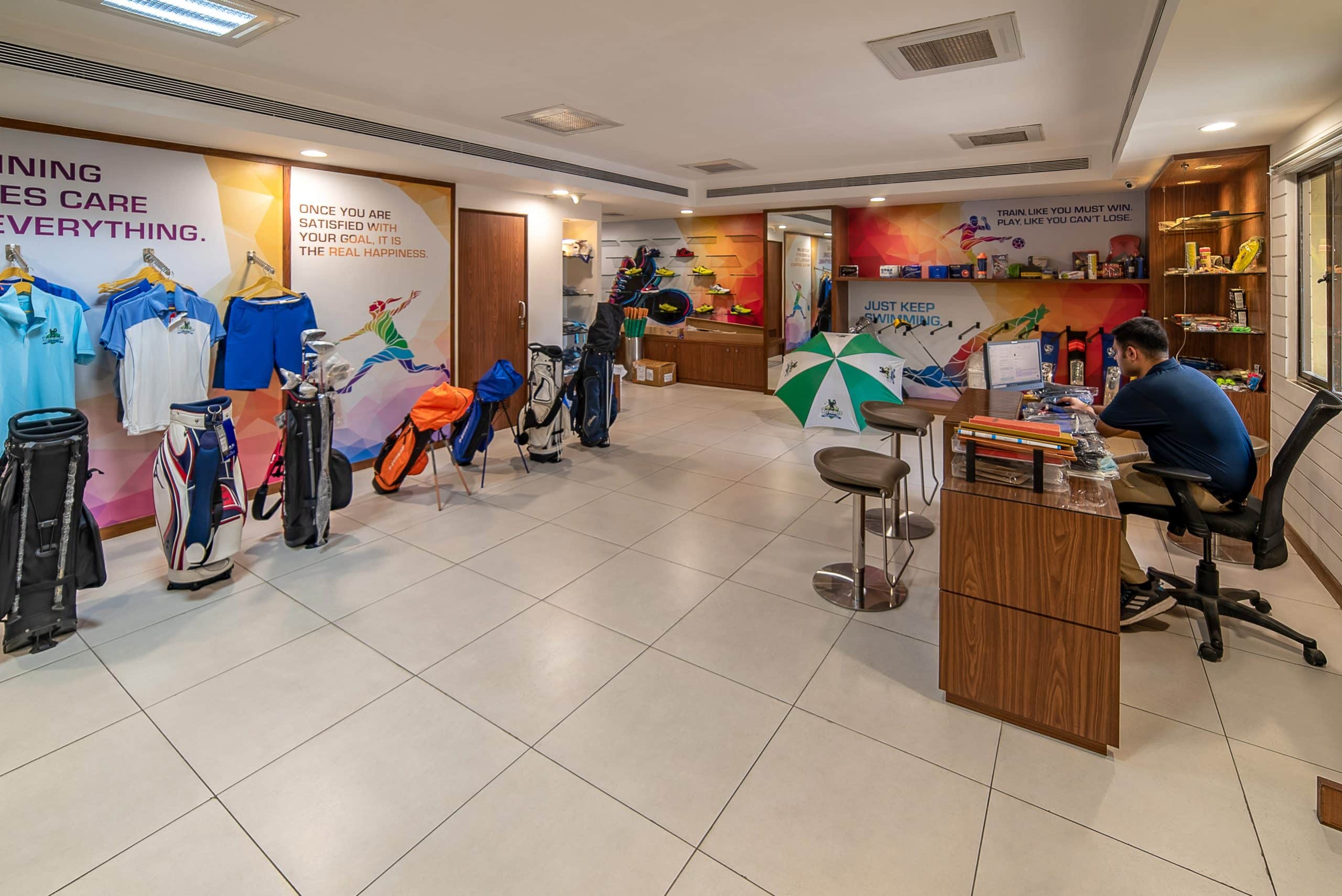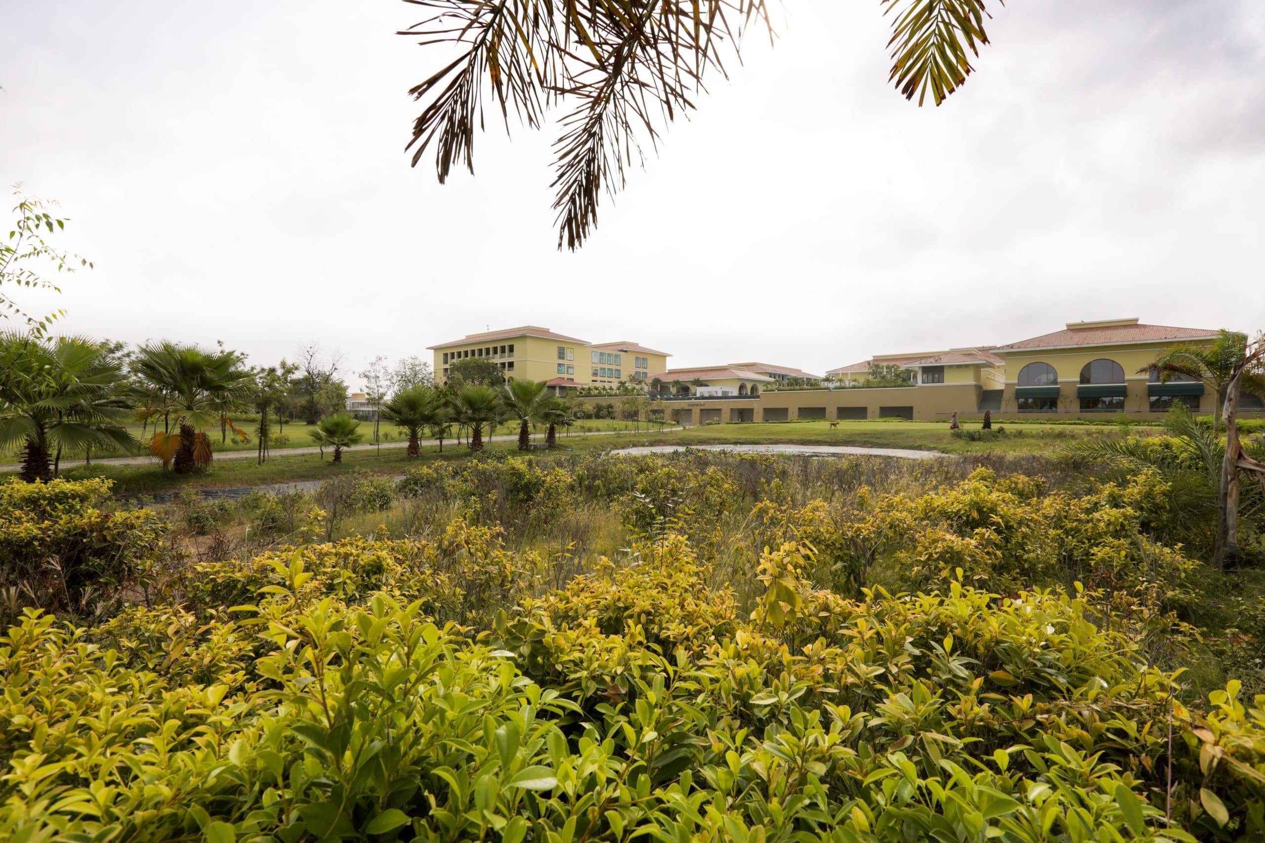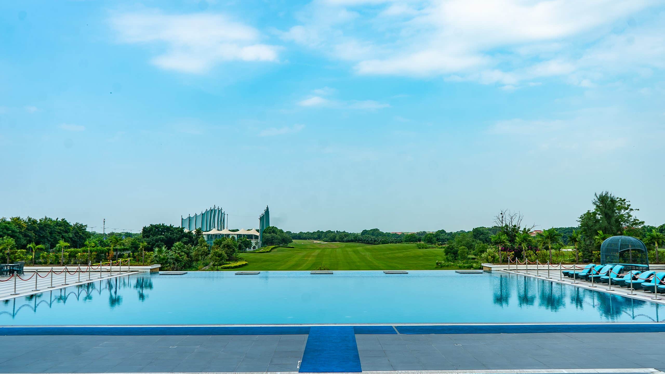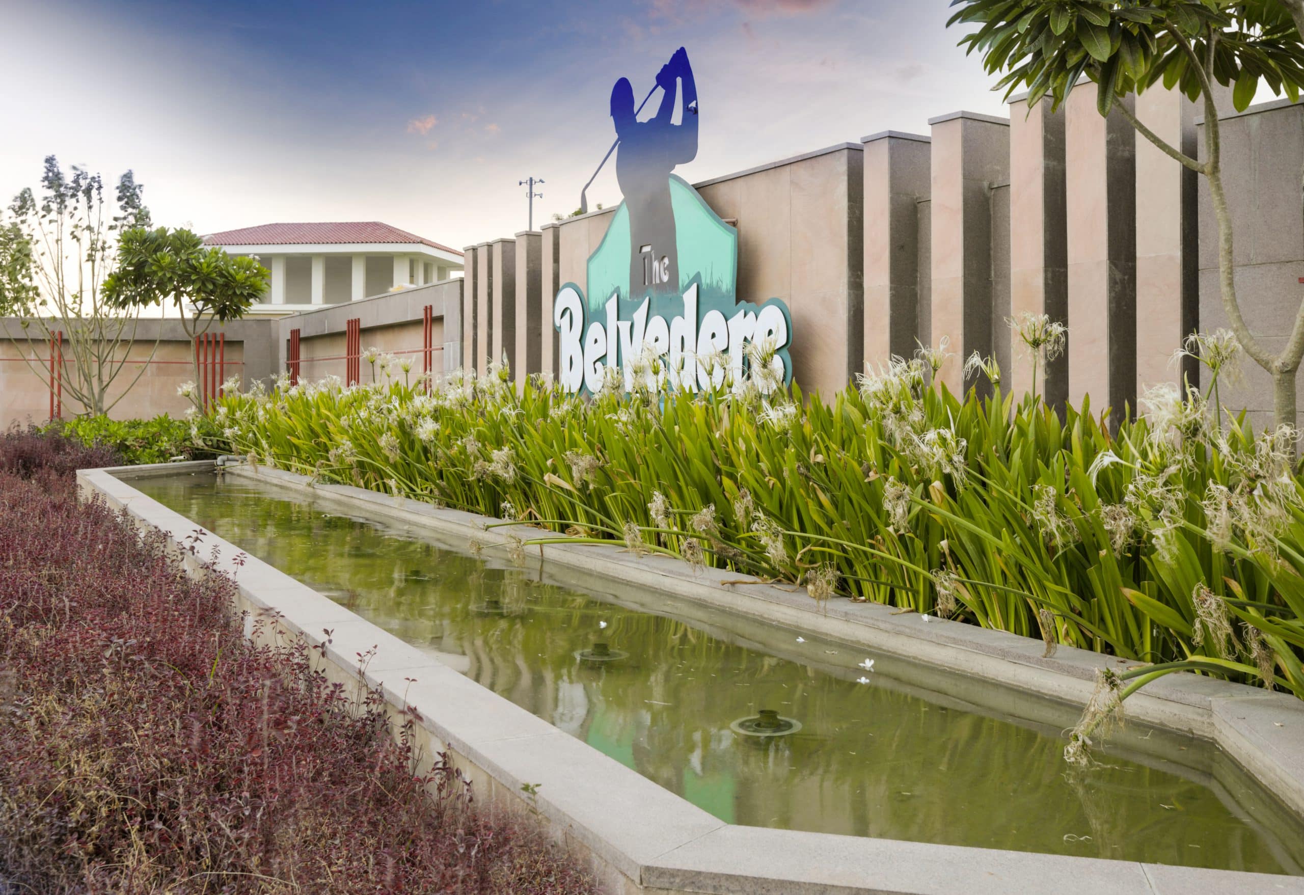 A trail with flowering varieties lining its edges takes off from the promenade to meander towards the golfing academy building set inside the golfing greens. The academy building with its arcaded façade coordinating visually with the Belvedere Club’s architectural language is well-facilitated with infrastructure and personnel for training community members in the sport, while its shaded terrace offers panoramic views of the scenic golfing greens, its undulating mounds of green and the sinuous water bodies featured within it.