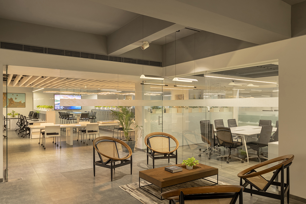 Continuing INI’s commitment to sustainability, strategies for efficient energy use, water conservation, and waste disposal have been integrated into the design. Automated lighting control significantly reduces energy consumption, and CO2 sensors monitor the indoor environment, at all times. These initiatives, which boost both immediate and long-term environmental performance, have garnered the office a Platinum rating from the Indian Green Building Council (IGBC), a recognition that underscores INI’s unwavering dedication to environmental stewardship and innovative design.