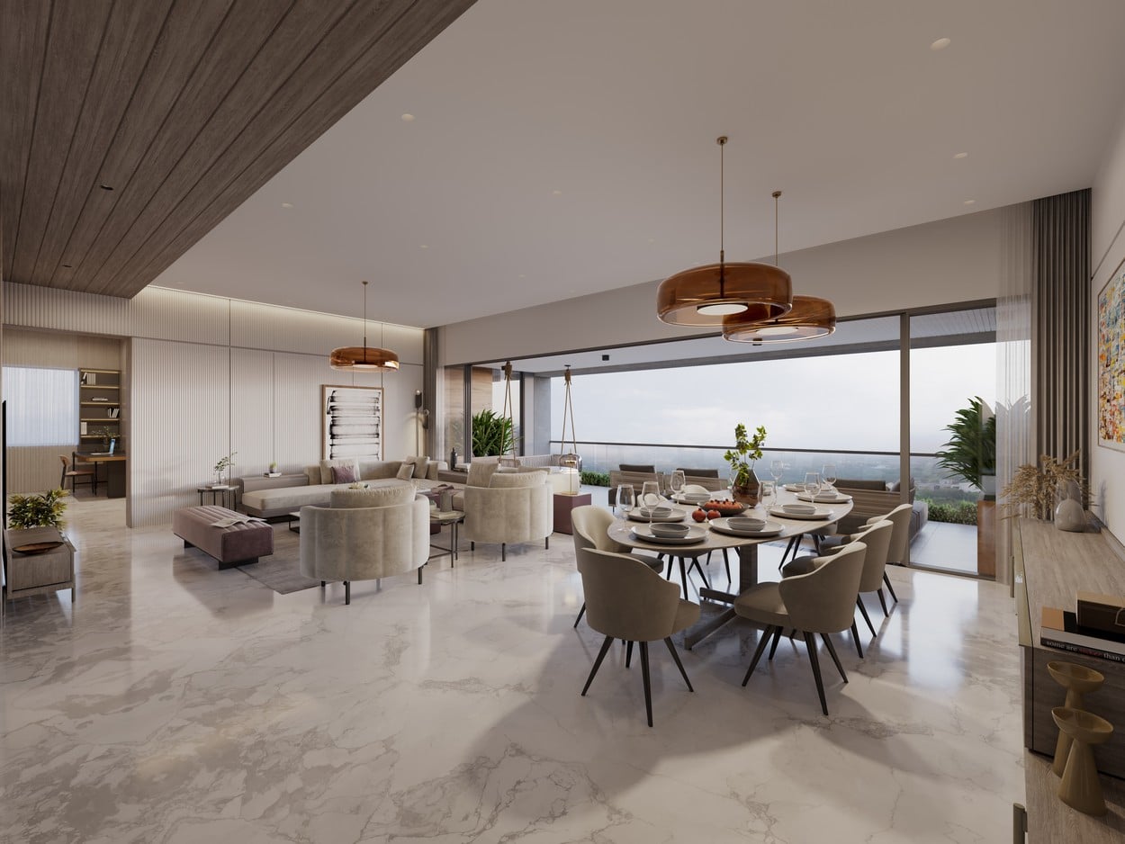 Each meticulously designed apartment within this complex has been artfully designed to bestow upon its residents a lifestyle of opulence and comfort. These exceptional dwellings boast expansive private lift foyers, guaranteeing both exclusivity and privacy for the occupants. Moreover, each unit is complemented by the inclusion of a servant room, amplifying convenience and providing additional assistance to residents.