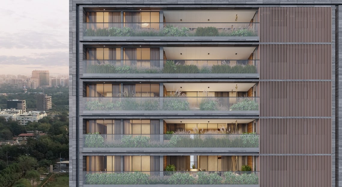 Located on Iscon-Ambli Road in Ahmedabad, this upscale residential complex offers an extraordinary and sublime living experience, boasting of 76 meticulously crafted 5-bedroom and 4-bedroom apartments. Exuding an air of sophistication, the complex redefines the concept of luxury living by seamlessly blending contemporary architectural prowess, lavish interiors, and unmatched amenities. Each apartment within this opulent haven has been thoughtfully designed, featuring private lift foyers, servant quarters, and abundant scenic vistas, ensuring a harmonious and grandiose lifestyle for its residents. The layout and orientation is designed to harmonize with the traditional principles of Vastu, fostering a flow of positive energy and cultivating an atmosphere of well-being. Close proximity to premium schools, hospitals, shopping centres, and entertainment options as also excellent connectivity to major transportation hubs provide a seamless integration into the vibrant fabric of the city.