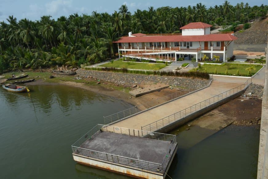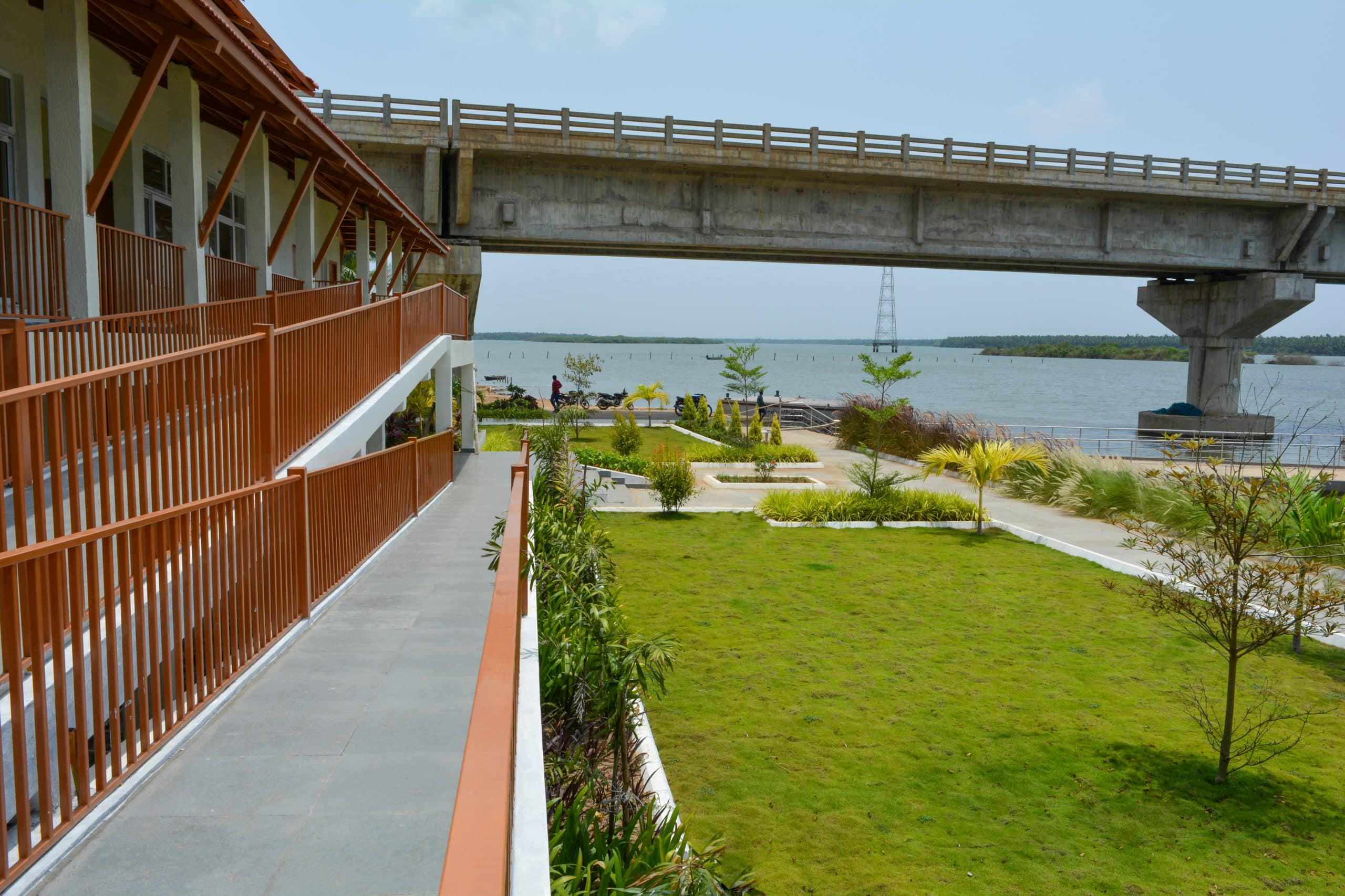 Backwater tourism and river boat cruises developed in other locations like Aduru, Vadalarevu on the same circuit add to the tourists’ basket of explorable options. Visitors interact closely with natural elements, facilitated by meandering pathways and boardwalks punctuated by pause points. Boats await at floating jetties for those wishing to explore the waters, others can opt to cycle around. Local hamlets and settlements, while left physically untouched, are economically bolstered by locating tourist lodgings nearby and enlivening their markets with appropriate interventions. The architectural style of the minimal built-forms, be they lodgings, restrooms, passenger terminal, ticketing or information centers, follow local traditional forms with sloping roofs, slat-shaded balconies in modules that alternate with courtyards in a lyrical play of solids and voids.