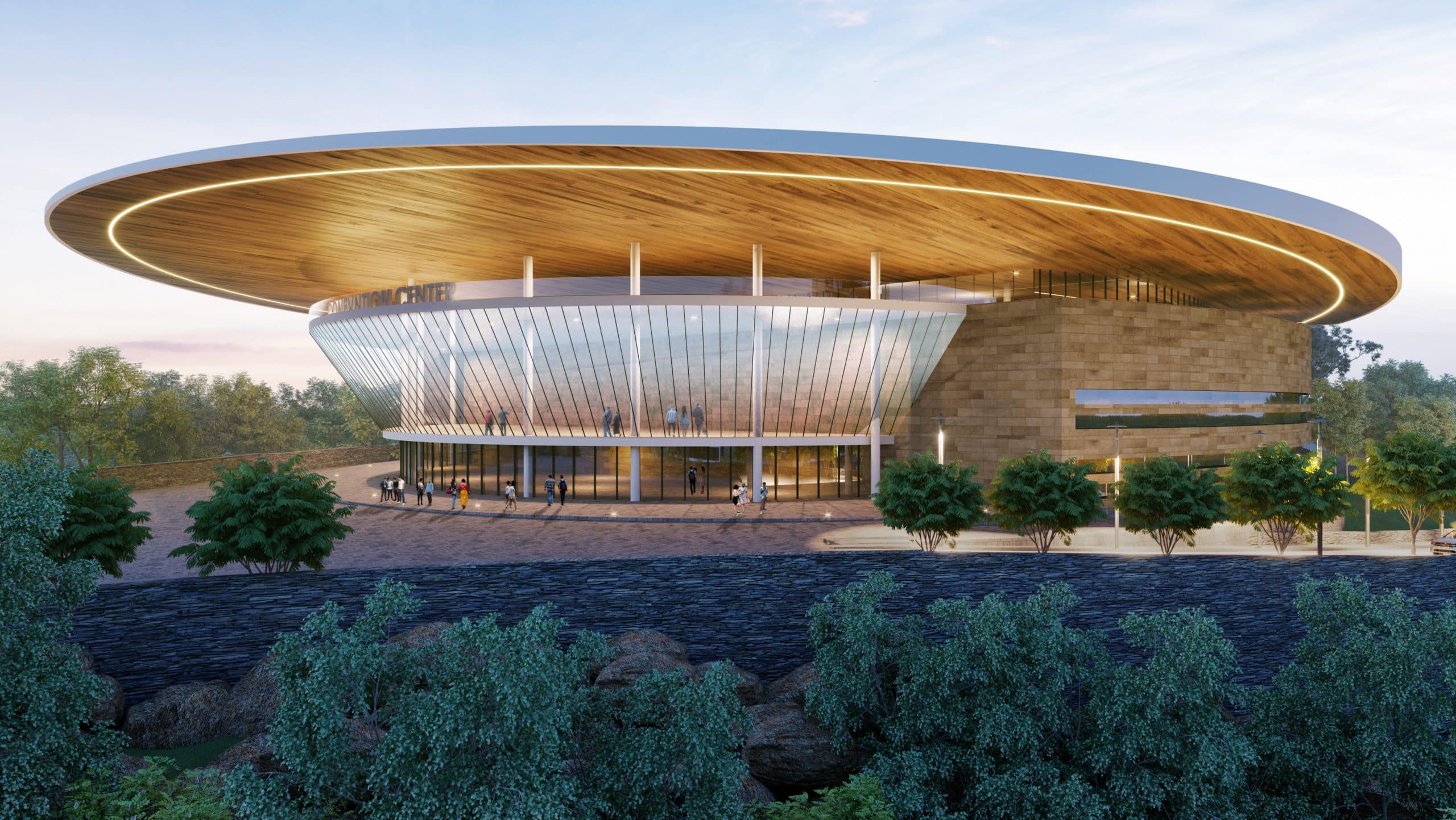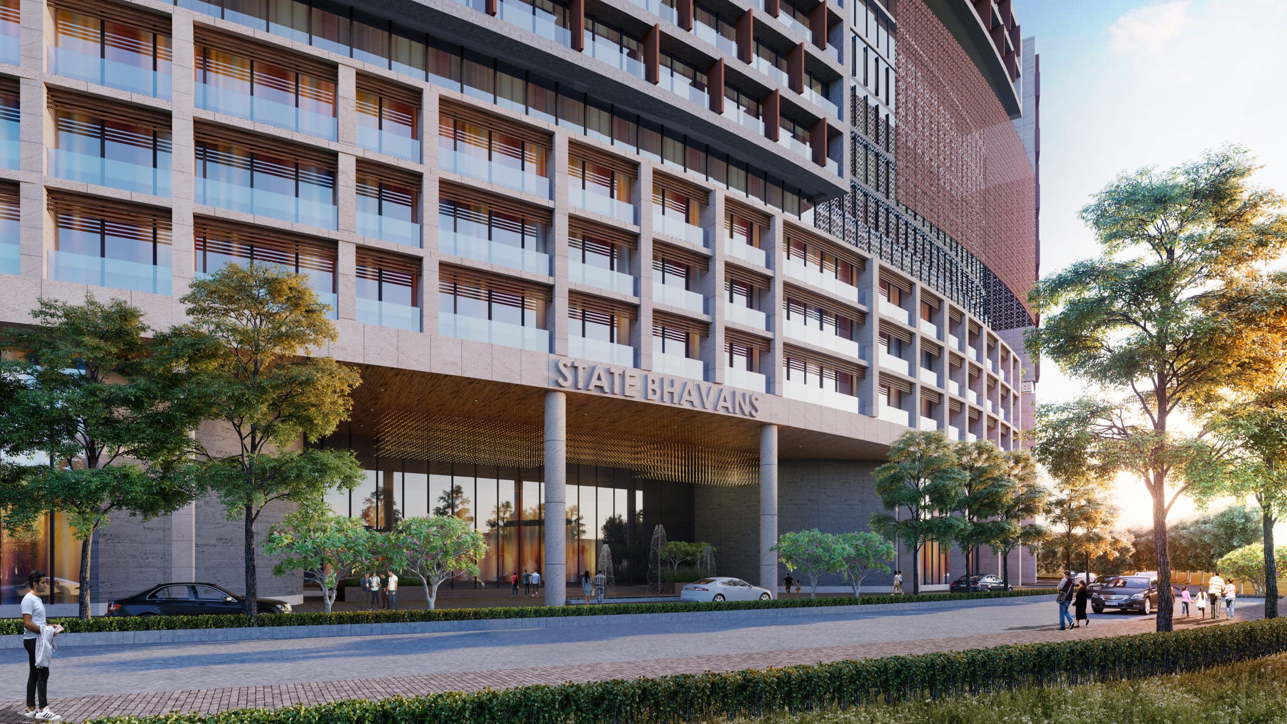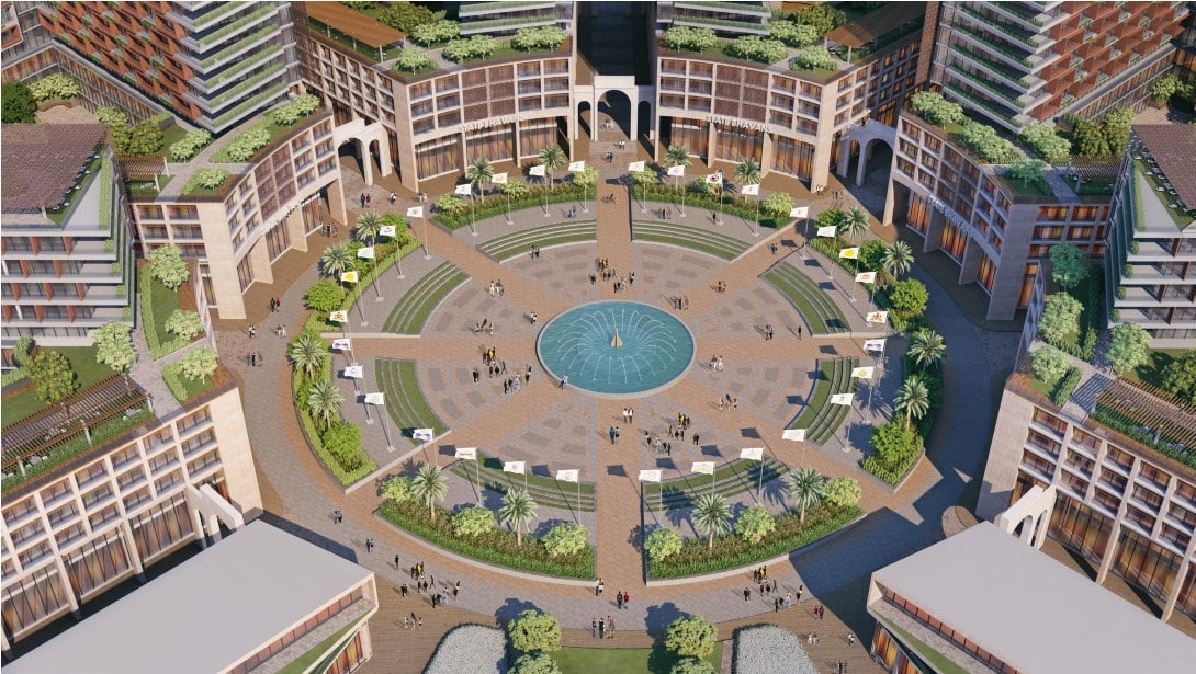 The project brief integrates well all programs into unique experience for visitors that include State bhavans, Convention center's, Riverside promenade and staff housing and recreational zones. Extending the theme of Statue of Unity; the design is inspired by Ashok Chakra, symbolizing the unity and integrity of the country. The design involves a radial massing stepping down inwards towards the center, providing a dynamic and intimate view from each terrace and opening. With a special arrival plaza, cultural streets Unity Park and sports and recreation zone, a peace garden, and cultural streets the project hold all kind of activities within the premises for a mesmerizing and memorable stay.
