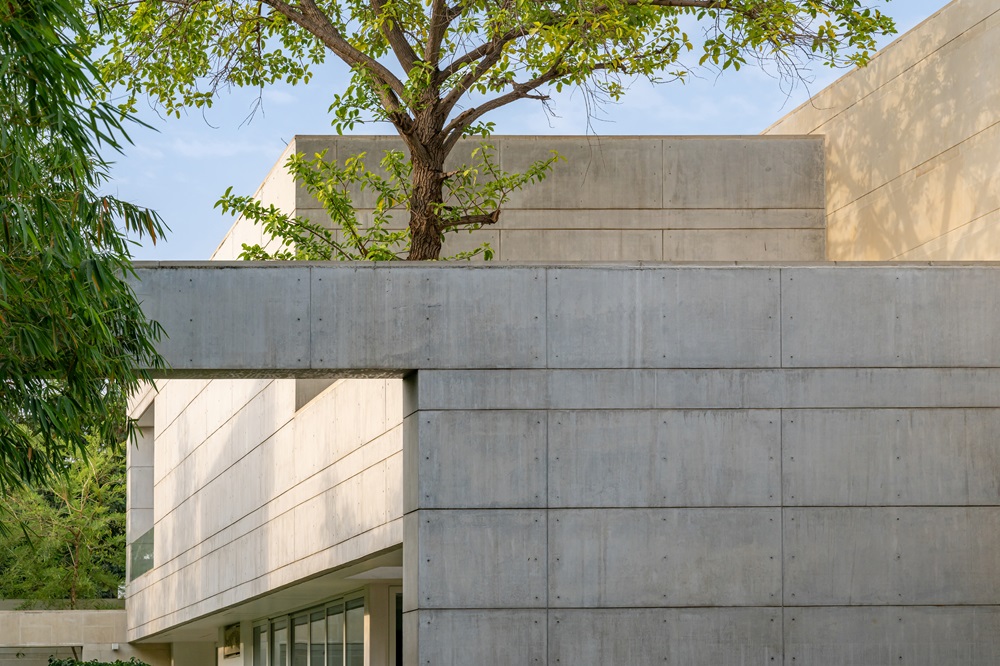 Environmental sustainability is a guiding principle throughout the villa’s design and construction. Use of cavity walls, eco-friendly materials and energy-efficient systems such as solar panels and LED lighting, minimize the environmental impact. Native plants, simple hardscaping, and towering trees harmonize with the villa’s architecture, creating a verdant oasis that requires minimal maintenance. Existing trees on the site have been accommodated through a cut-out in the slab of the first-floor terrace, integrating Nature within the architectural framework.