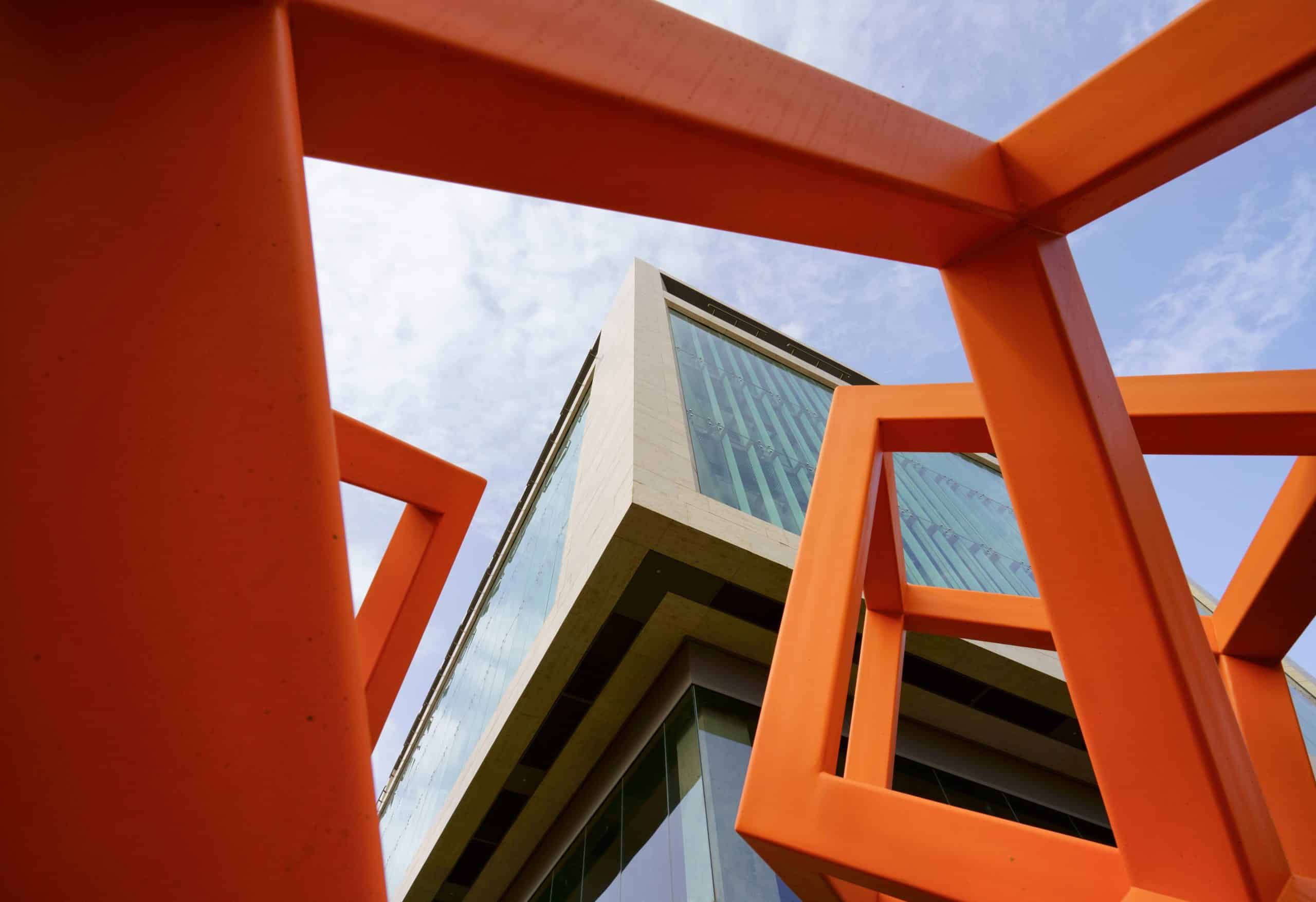 The exposed concrete elements frame pervasive glazed surfaces within the simple geometrical form of a basic cuboid. Additionally, the horizontal elements emphasized by means of subtle repetition and recess portray the essence of modernist architecture. Office infrastructure at par with the latest global requirements was installed. A venue of international appeal, an efficiently productive work environment in which to do business was made available for the city’s industries and corporates.