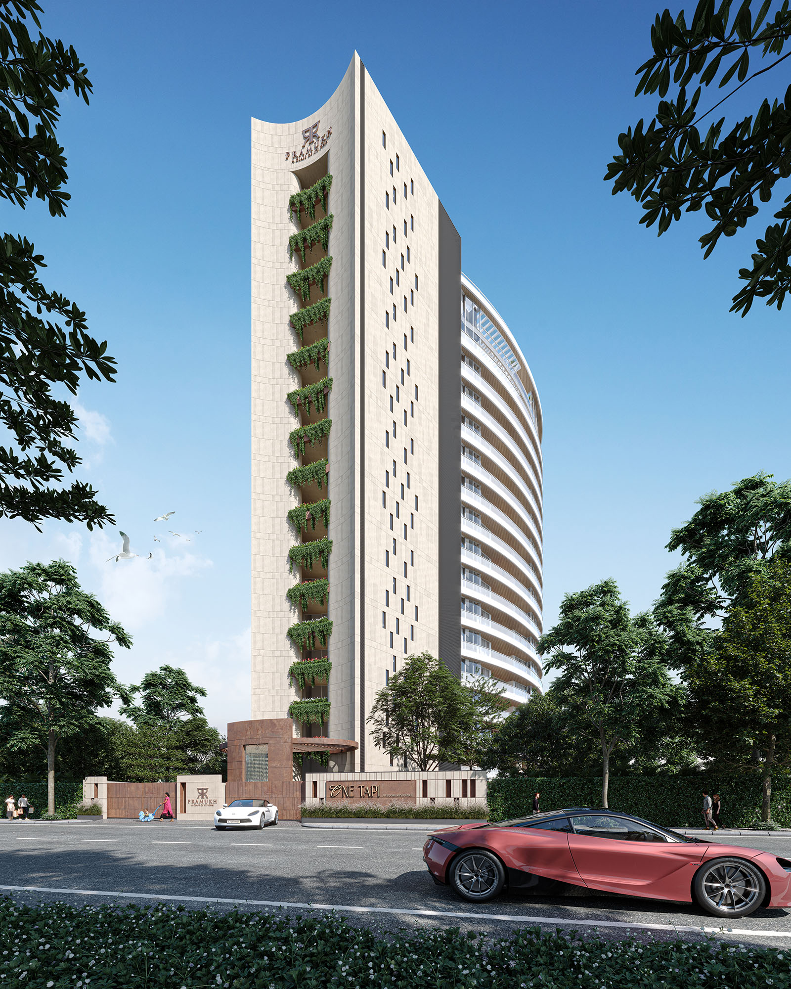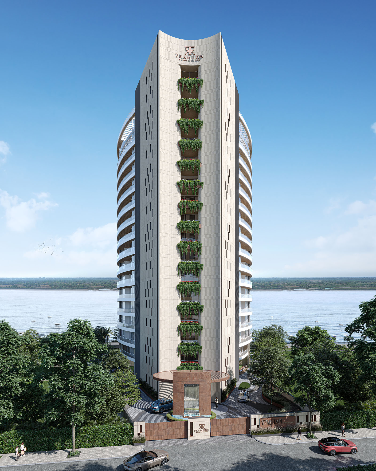 Situated alongside the meandering Tapi River coursing through Surat city, "One Tapi" incorporates the organic contours of its inspiration, creating a harmonious blend with the majestic river. The avant-garde tower, characterized by its sinuous silhouette, integrates into the natural tapestry of its surroundings. Designed for an ultra-luxurious experience, this residential tower with exclusive waterfront sky villas affords a panoramic spectacle, offering unobstructed views of the river and the city skyline. One Tapi emerges as a defining landmark poised to elevate both the residential and architectural standards of the city