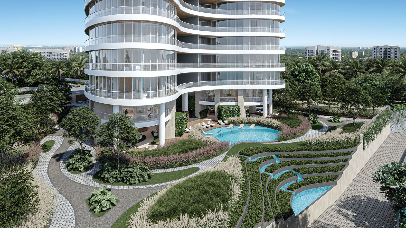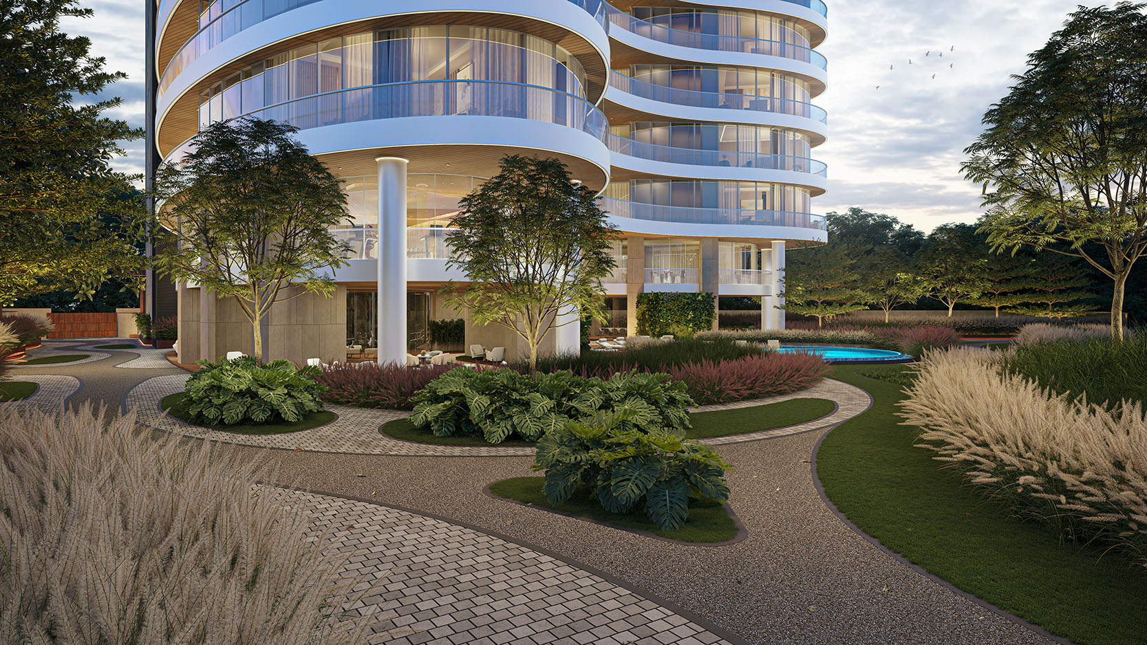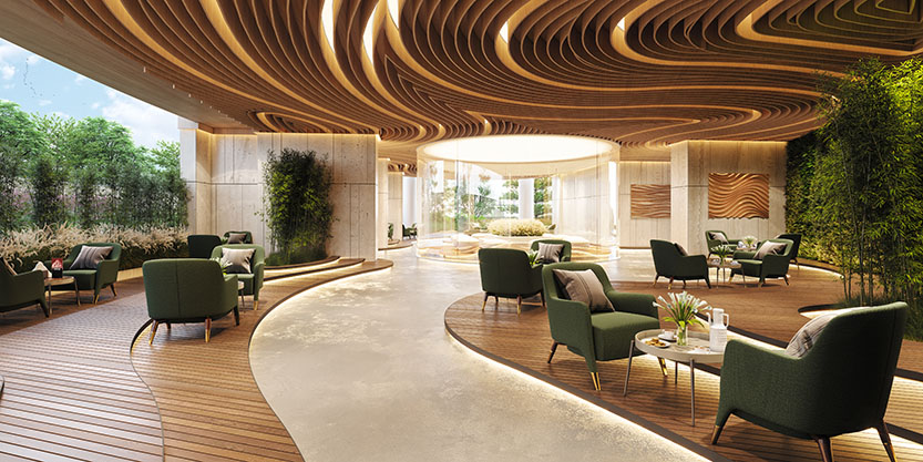 immersive and unparalleled living experience. The villa interiors also mirror the fluidity of the external form. Curved