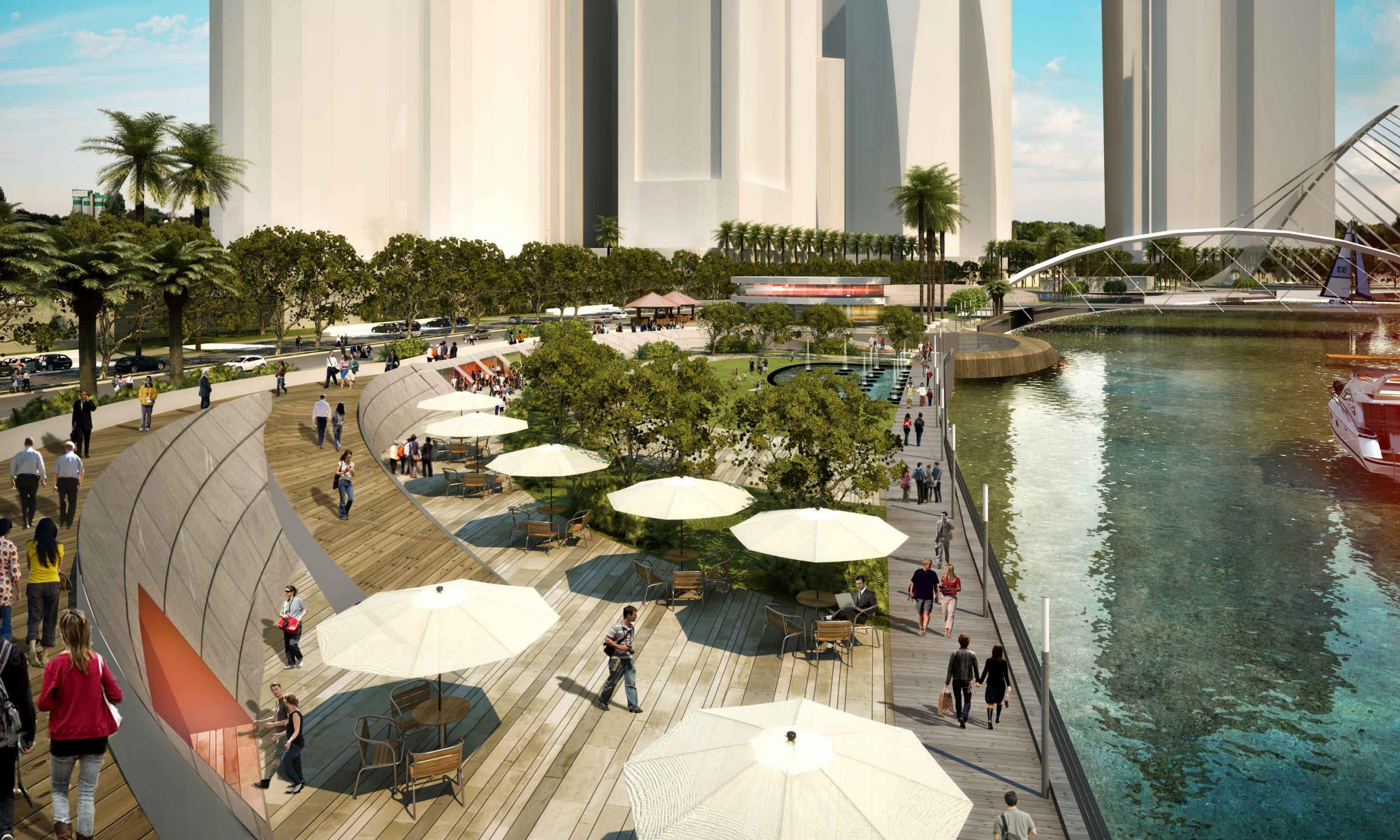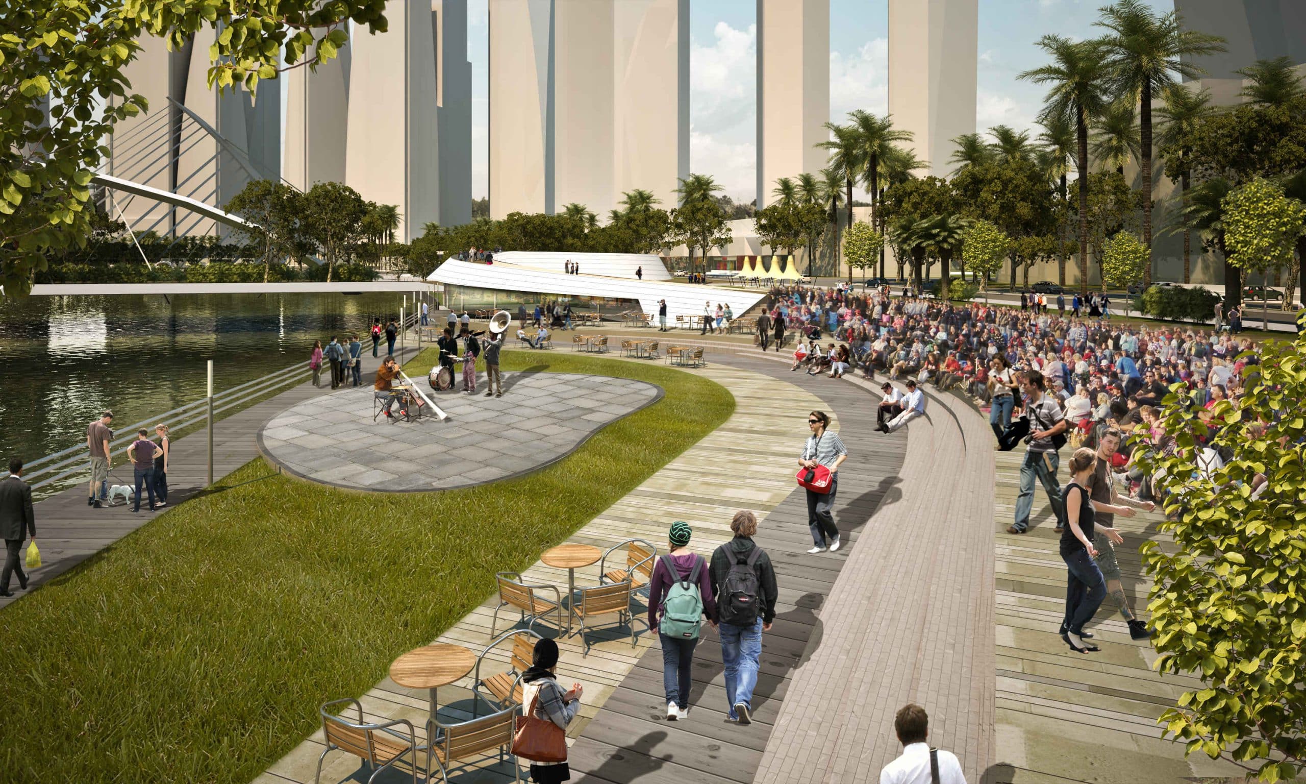Landscaped Socio-Cultural Civic District Overlooking Storm Water Reservoir Lake