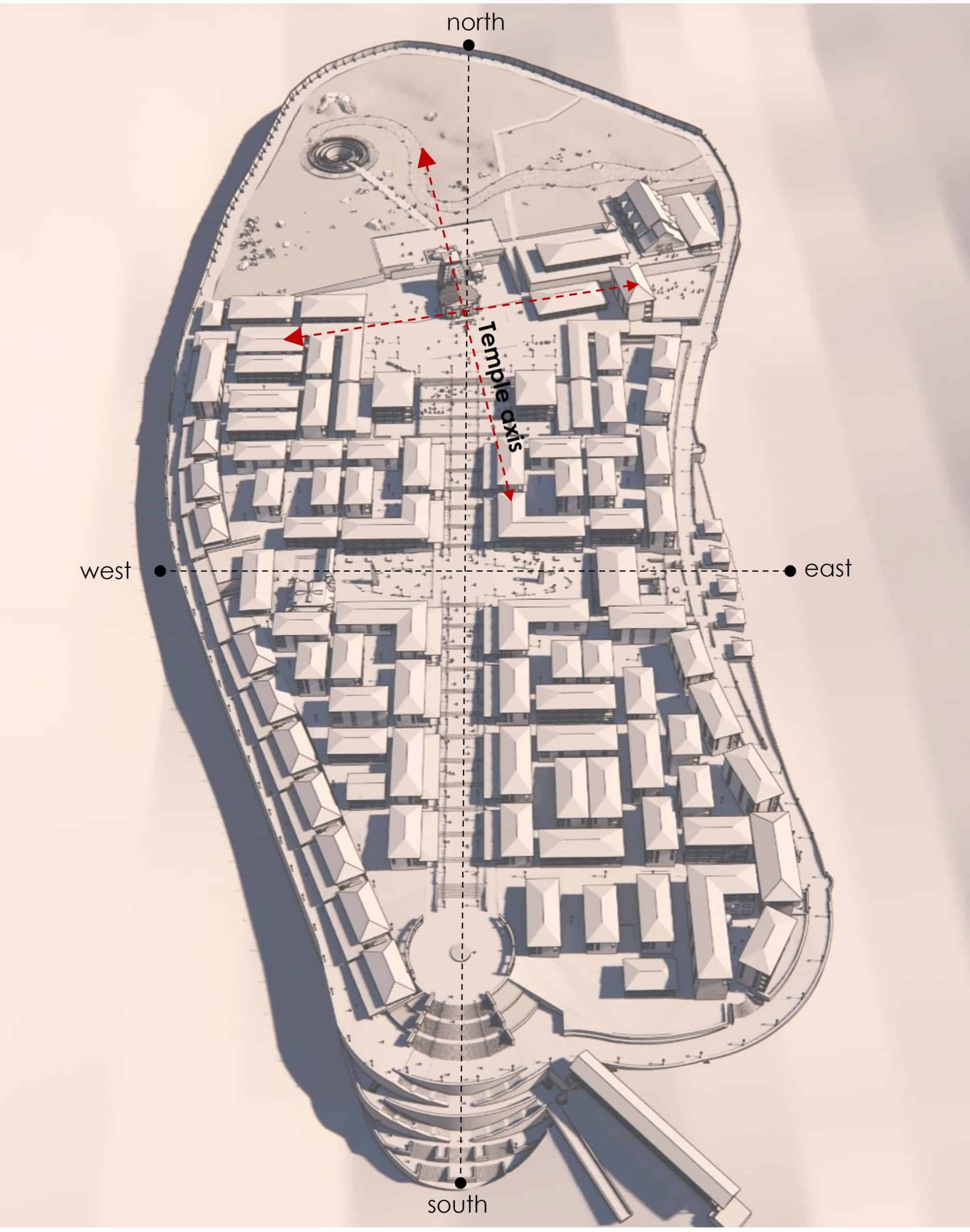 The existing temple axis