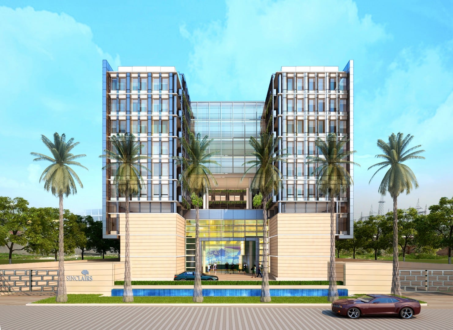 Thus dispensed around its own internal landscape the hotel tends to exude a resort-like aura. The service core gets split and distributed into four corners of each floor, tying up the corridors that circumvent the rooms and look out through all four faces of the ground + 6 floors high building. A double basement provides ample parking space to completely avoid vehicular cluttering at the ground level.