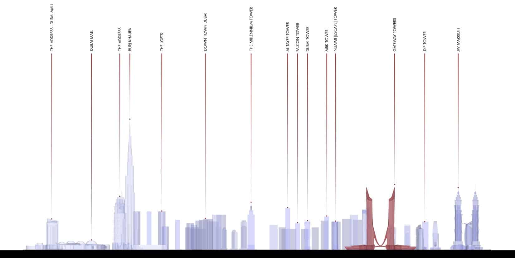 The Gateway Towers, as the name suggests, are a set of identical twin towers framing the entrance from Sheikh Zayed Road into the Al Khaleed Al Tejari 1 Street leading to the Business Bay area of Dubai’s coast. Rising to 72 floors from twin L-shaped podium level base flanking the road corners, the towers majestically define not just the entry to a prime business district, but also the surrounding cityscape with their tall, iconic, steely pinnacled spires which are second only to the Burj Khalifa.