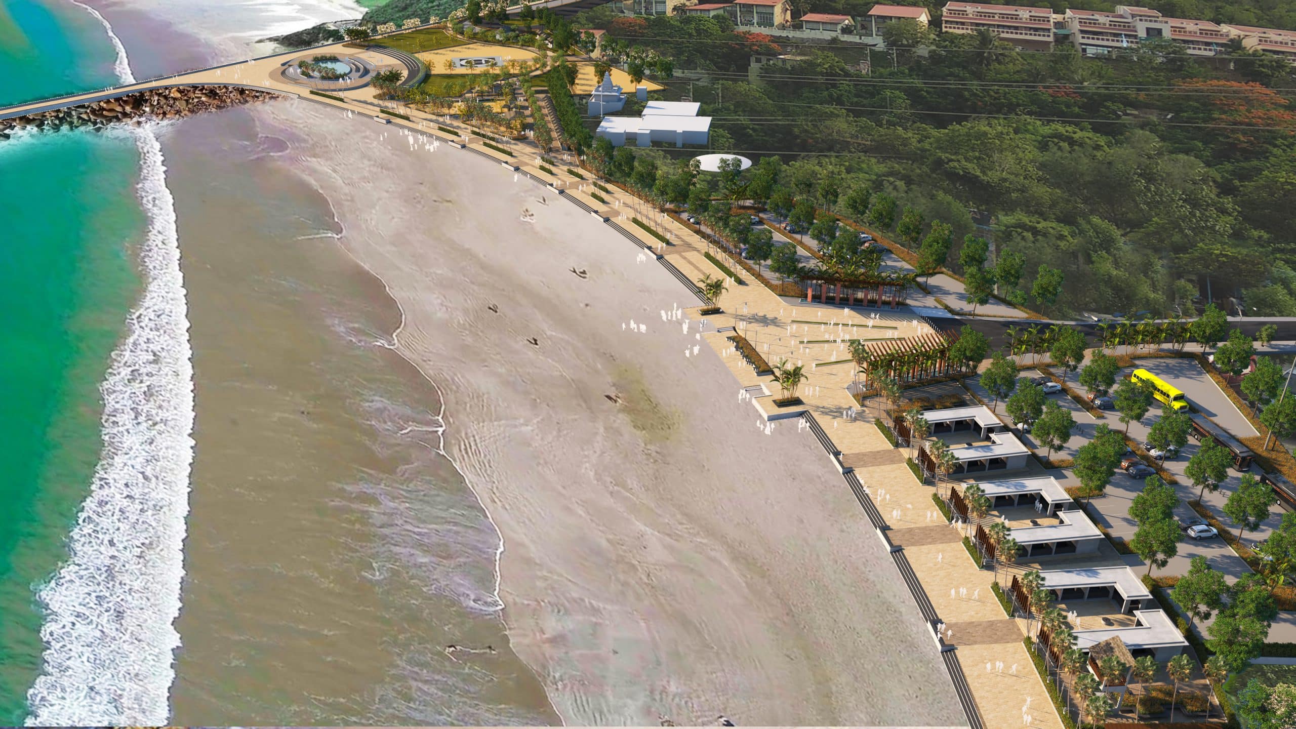 The masterplan design presents a unique case of integrating multiple experiences that cross-over from densely urban to fisherman settlements to tourist spots and forested areas through a comprehensive manner that makes it an active public realm for a wide range of users while adding to the resilience of people, place and livelihoods.